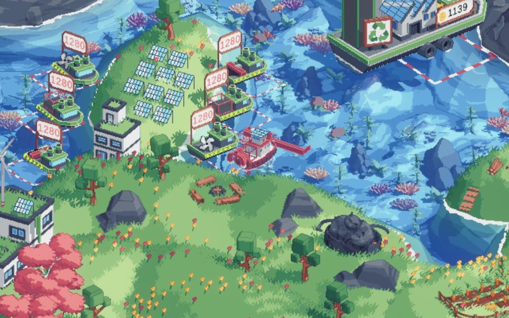 マップのところどころにいる動物達のグラフィックも小さくてかわいい。回収すると名前が見れます。かわいいね。掃除するとお金が貰えるので船のアプデができます。更に油を吸えるぞ。